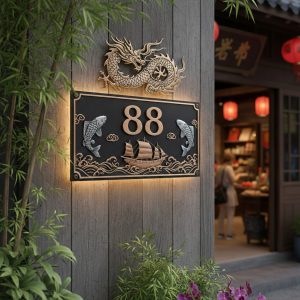 หลายบ้านและร้านค้านิยมเพิ่มลวดลายมงคล เช่น มังกร เรือ ปลา หรือสัญลักษณ์แห่งความมั่งคั่ง เพื่อเสริมความหมายให้กับป้ายบ้านเลขที่