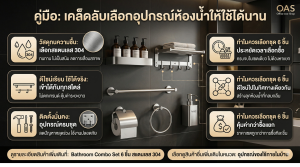 ห้องน้ำเป็นพื้นที่ที่มีความชื้นสูง การเลือกสแตนเลส 304 จะช่วยลดปัญหาการเสื่อมสภาพในระยะยาว