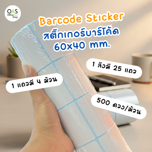 Barcode Sticker สติ๊กเกอร์บาร์โค้ด 60×40 mm. 500 ดวง/ม้วน