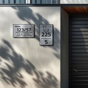 สำหรับการระบุเลขที่บ้านในโครงการบ้านจัดสรรหรือห้องพักในคอนโดมิเนียม ป้ายเลขที่บ้านสแตนเลสประกบอะคริลิก เป็นทางเลือกที่ให้ความภูมิฐานและชัดเจน ด้วยเทคนิคการประกบวัสดุสองชนิดเข้าด้วยกัน ทำให้ป้ายมีความหนาและดูมีมิติ สวยงามในทุกมุมมอง