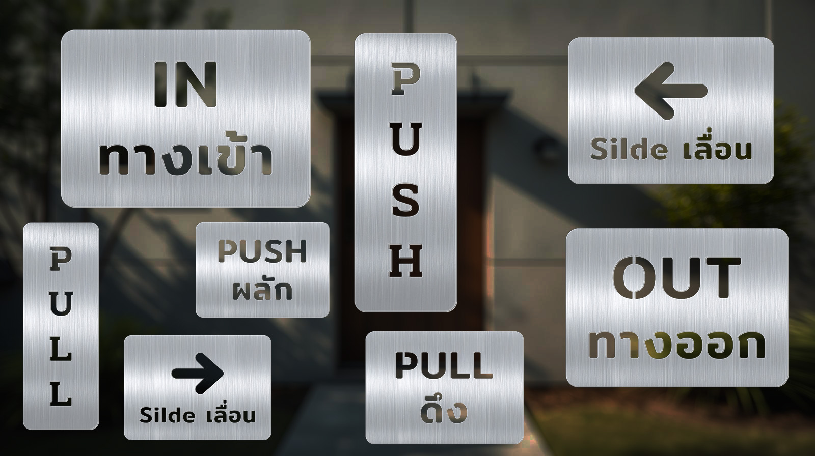 มีให้เลือกครอบคลุมทุกการใช้งาน เช่น ป้ายผลัก ดึง เข้า ออก และเลื่อน โดยมีตัวเลือกสินค้ามากถึง 8 รูปแบบ