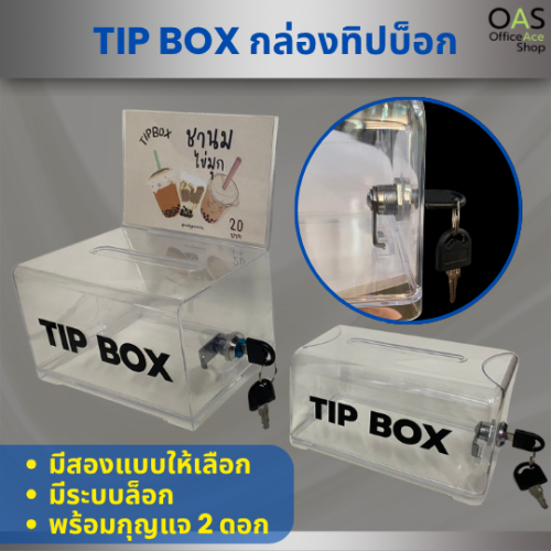 TIP BOX Tipbox กล่องทิป กล่องใส่เงิน กล่องบริจาค สีใส พร้อมกุญแจล็อค