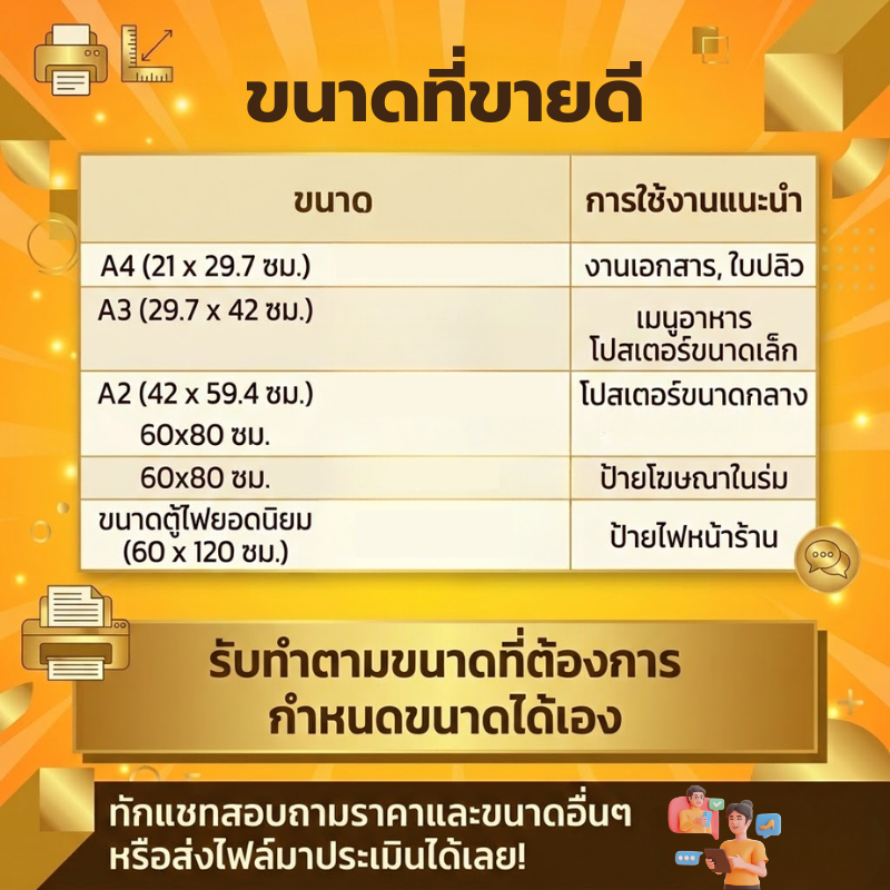 ช่วยให้ป้ายร้านหรือป้ายเมนูของคุณโดดเด่นสะดุดตา! มีบริการรับพิมพ์งาน สำหรับลูกค้ามีไฟล์แล้ว