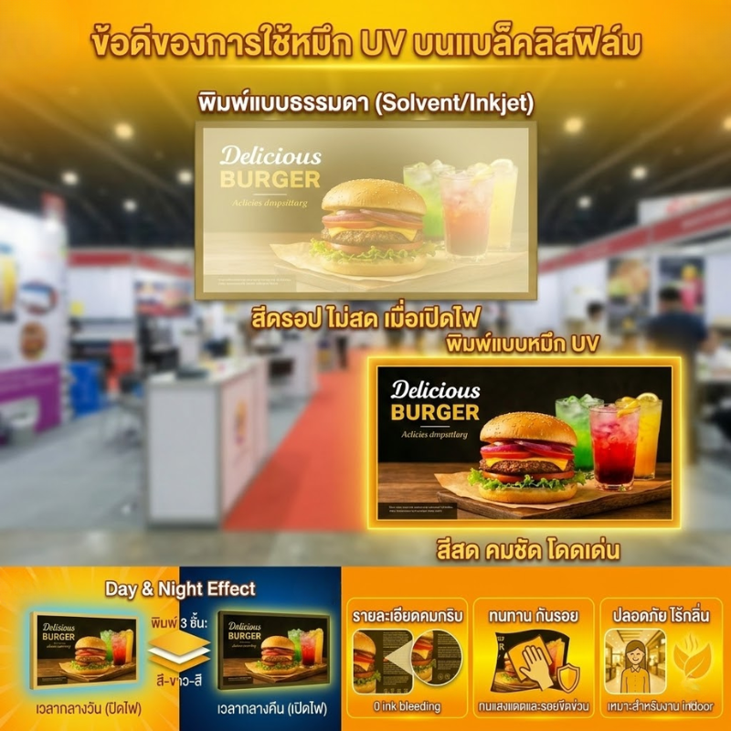 ระบบพิมพ์ UV หมึกแท้: สีสด สวยเด่น คมชัด สว่างทะลุจอ