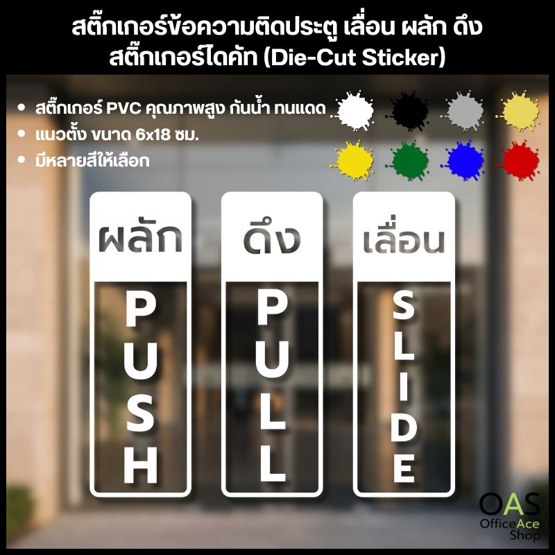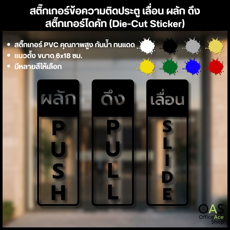 #OAS #OfficeAceShop #สติ๊กเกอร์ติดประตู #PUSH #PULL #SLIDE #ป้ายผลักดึง #สติ๊กเกอร์ไดคัท #กันน้ำ #ทนแดด #ของตกแต่งร้าน #สติ๊กเกอร์PVC