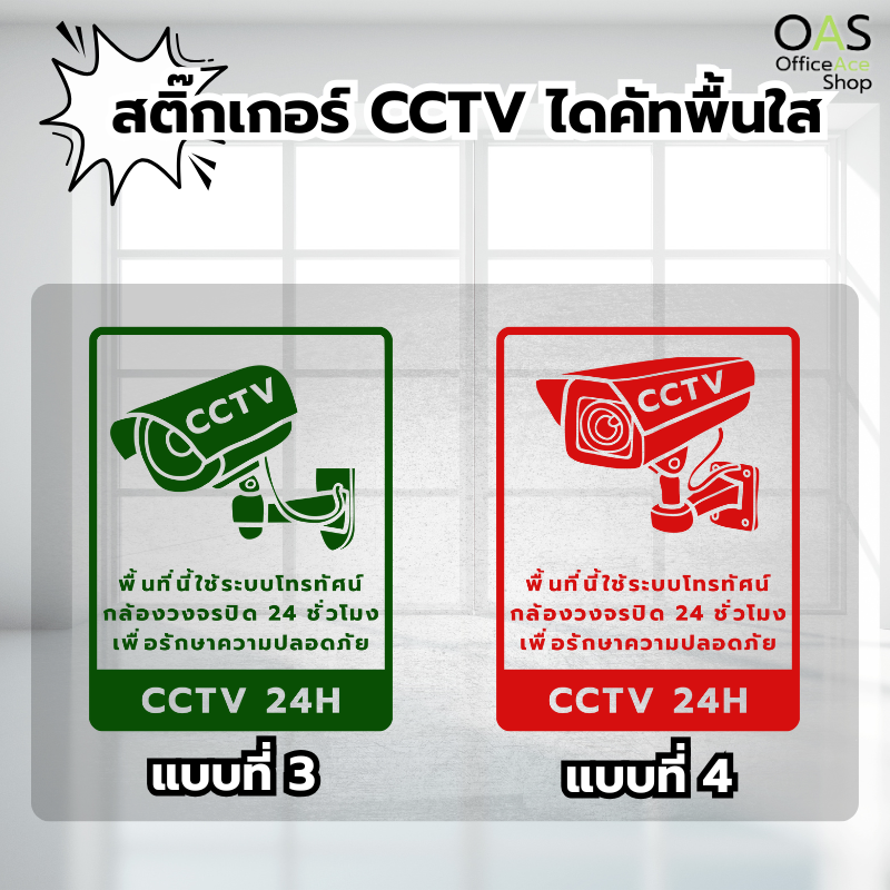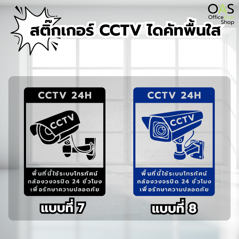 ป้ายเตือนกล้องวงจรปิด CCTV – สติ๊กเกอร์พื้นใสแบบไดคัท