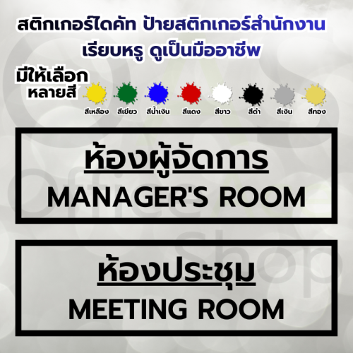 ป้ายกำกับ: DieCutSticker, OfficeSticker, ThaiEnglishSign, ป้ายติดห้องทำงาน, ป้ายสำนักงาน, ป้ายห้องประชุม, สติกเกอร์ติดกระจกสำนักงาน, สติกเกอร์พื้นใส
