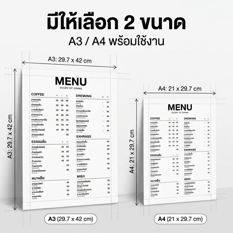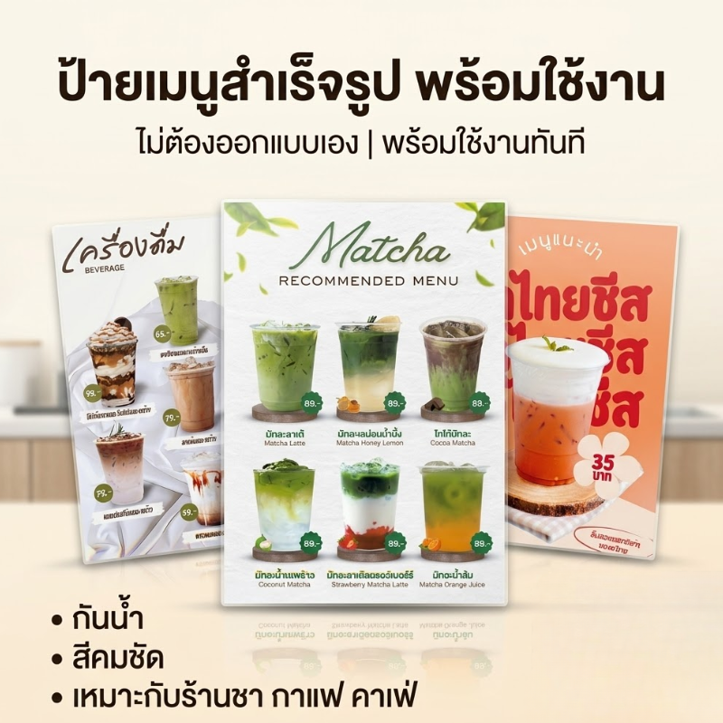 เนื่องจากเป็นป้ายรูปแบบสำเร็จรูป ทางร้าน รับเปลี่ยนชื่อเมนู สามารถสั่งให้ “ลบ/ตัด” เมนูที่ทางร้านไม่มีออกได้ ทางร้าน ไม่รับงานออกแบบใหม่ และ ไม่มีไฟล์ภาพจำหน่าย ค่ะ 🛒