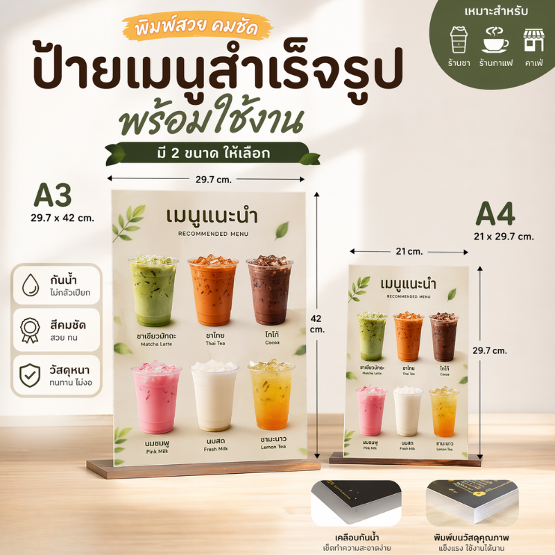 บริการพิเศษ (ฟรี!): สามารถระบุ “ราคา” และ “ใส่โลโก้ร้าน” ลงในป้ายได้ เพื่อให้ป้ายเป็นเอกลักษณ์ของร้านคุณ ⚠️