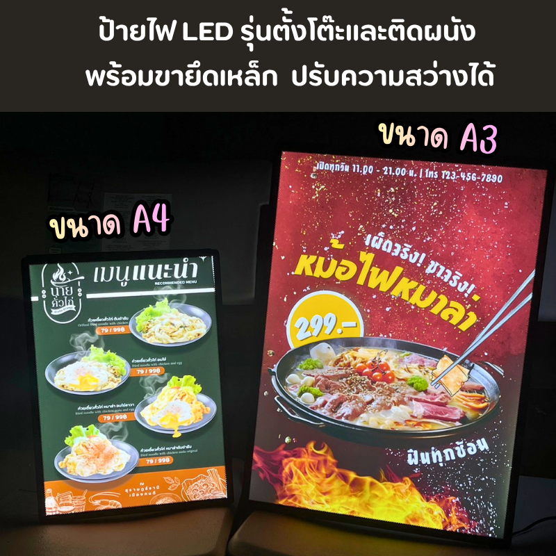 จุดเด่นที่คุณต้องไม่พลาด! เปลี่ยนเมนูธรรมดาให้โดดเด่นสะดุดตาด้วยกล่องไฟ LED คุณภาพพรีเมียม ตอบโจทย์ร้านอาหาร คาเฟ่ และบาร์ ที่ต้องการเพิ่มความน่าสนใจให้เมนูและโปรโมชั่น ดึงดูดลูกค้าได้จากทุกมุมมอง 🎯