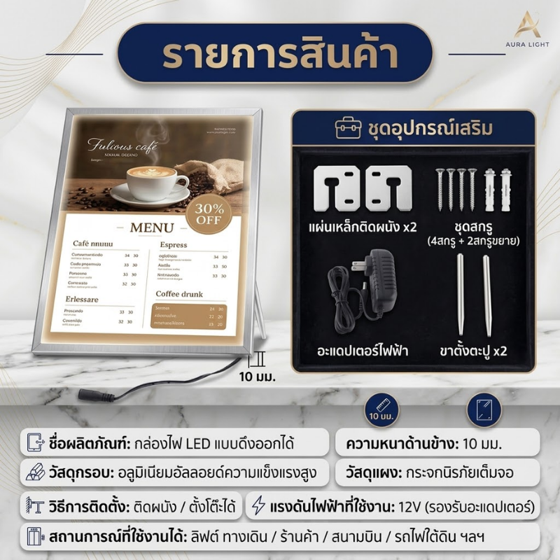 🌟 ดึงดูดทุกสายตา ยอดขายปัง! กรอบไฟเมนูอาหารปรับความสว่างได้ LED (LED Menu Lightbox) รุ่น #LED03