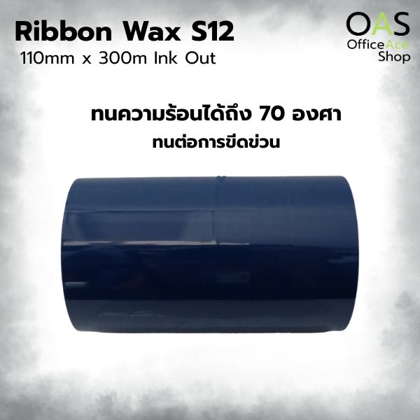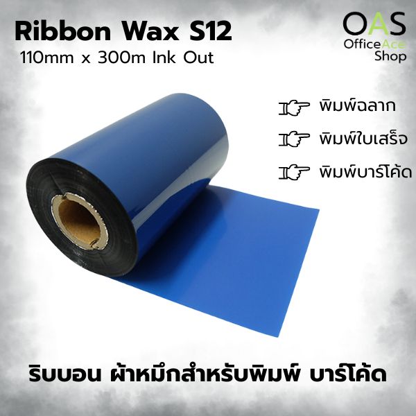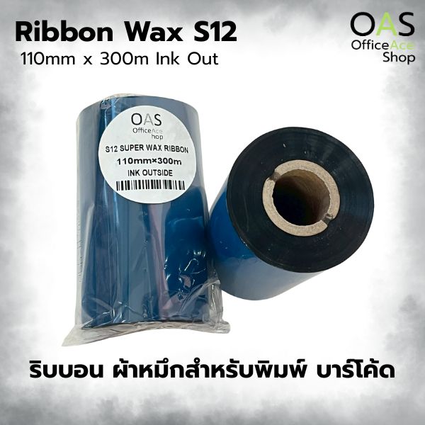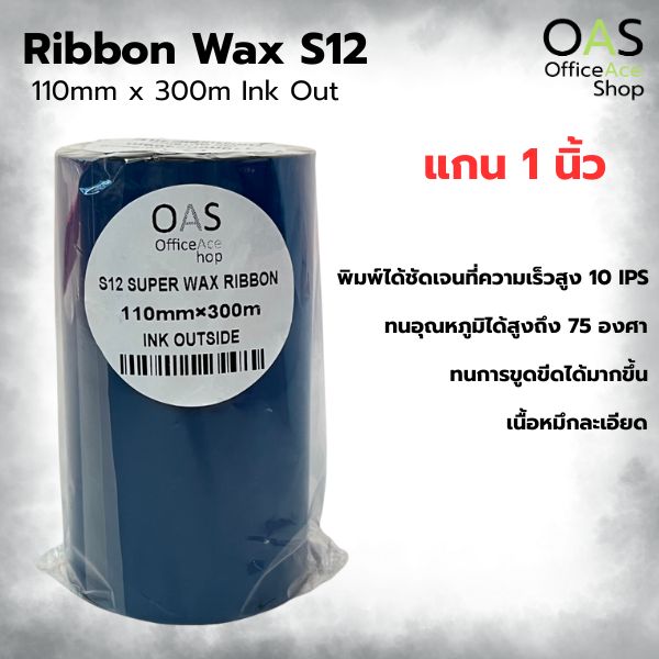S12 Super Wax Ribbon ริบบอนพิมพ์บาร์โค้ด 110mm x 300m Ink Out 🎀หน้ากว้าง: 110 มม.
