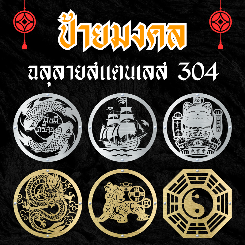 #ป้ายมงคล #ป้ายสแตนเลส #สแตนเลส304 #ของแต่งบ้านมงคล #เสริมฮวงจุ้ย #ป้ายฉลุลาย #ของขวัญขึ้นบ้านใหม่ #ป้ายร้านค้า #StainlessSteel304 #LuckySeries #ตกแต่งผนัง #มังกร #ปลามงคล #แมวกวัก #กระจกแปดเหลี่ยม #ปี่เซียะ