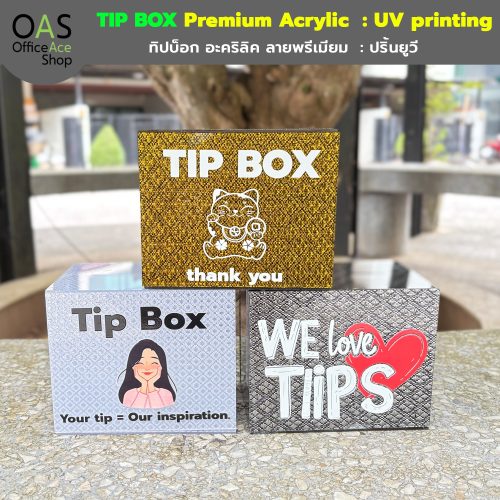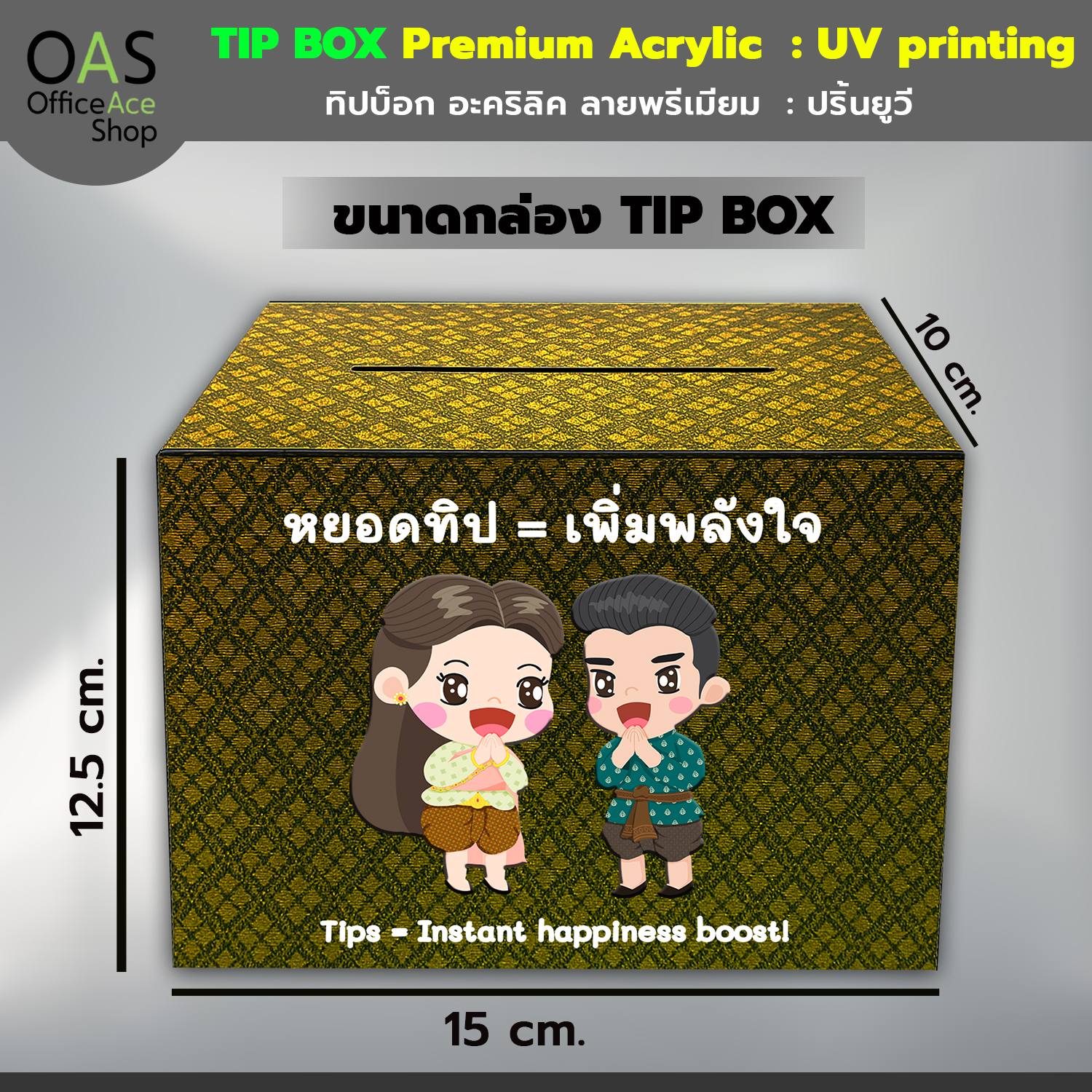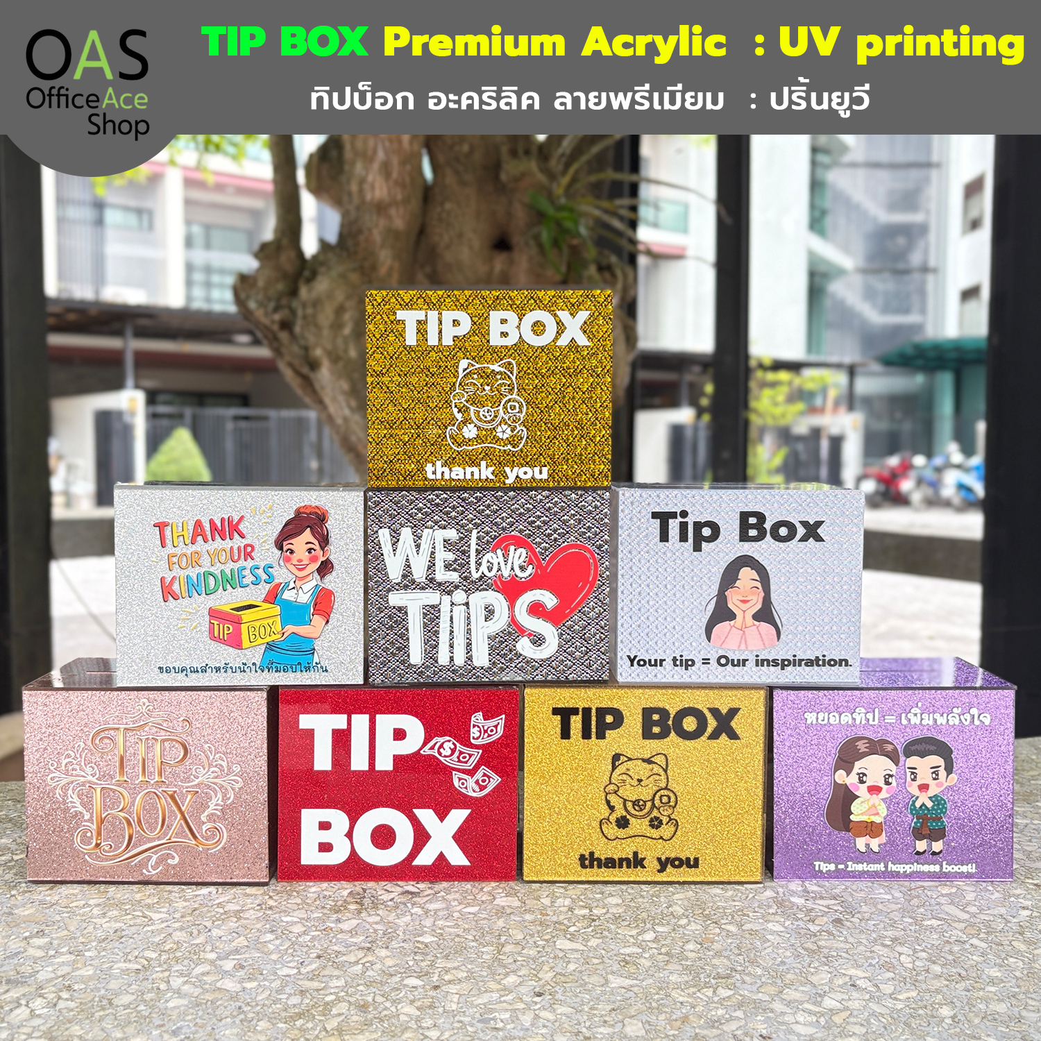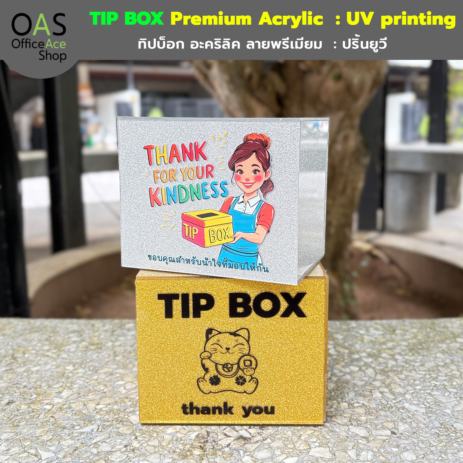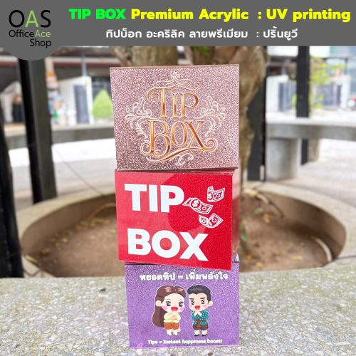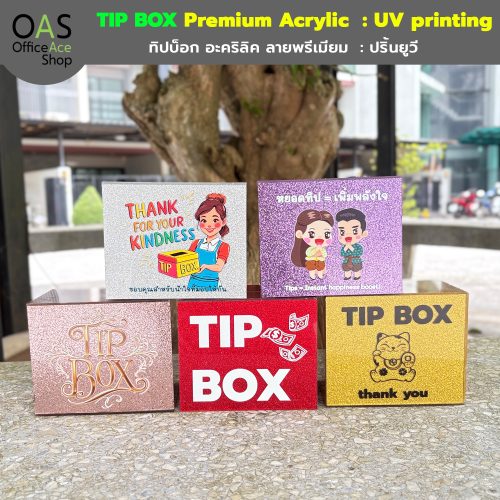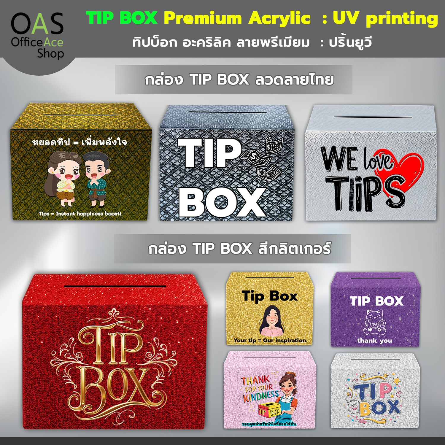 TIP BOX Premium Acrylic UV printing กล่องทิปบ็อกพรีเมียม ปริ้น UV ลวดลายไทย และ สีกลิตเตอร์ #PMTB7868A