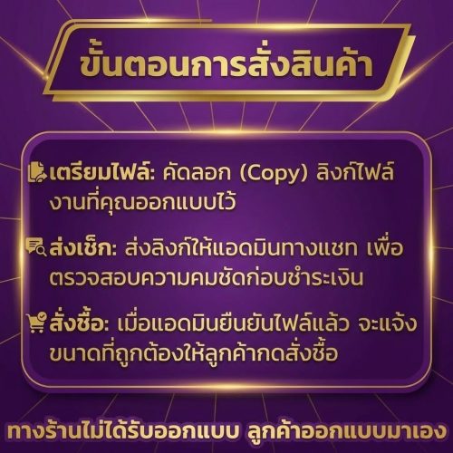 🖼️ สัดส่วนภาพ: หากไฟล์งานที่ส่งมาสัดส่วนไม่ตรงกับขนาดที่สั่ง องค์ประกอบภาพอาจเคลื่อนเล็กน้อย (ร้านจะส่งแบบให้ตรวจก่อนพิมพ์จริงเสมอ)