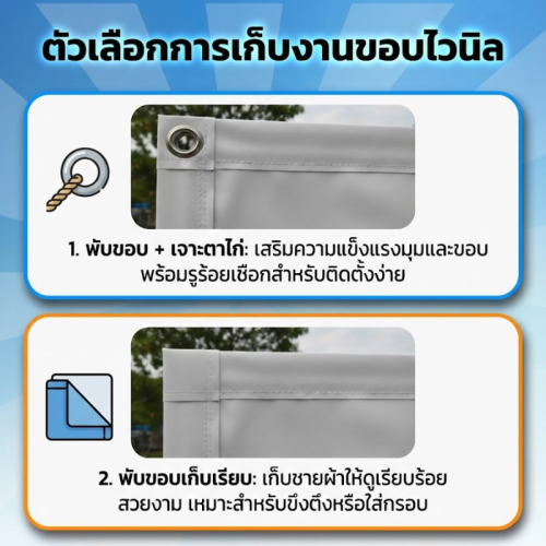 🔹 บริการฟรี: พับขอบ + เจาะตาไก่ 🎁
