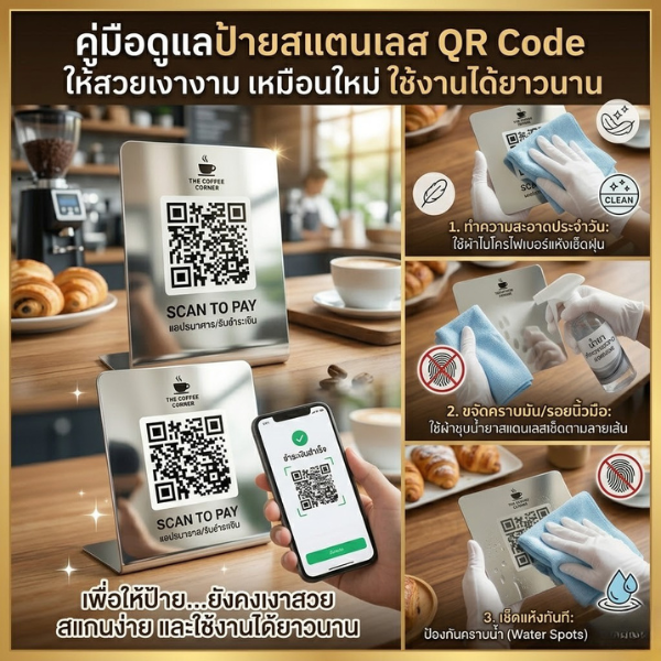 ป้าย QR Code ไม่ใช่แค่เครื่องมือรับเงิน แต่ยังเป็น “ภาพลักษณ์หน้าร้าน” ที่ลูกค้ามองเห็นทุกวัน โดยเฉพาะป้ายสแตนเลสที่ออกแบบมาให้ดูพรีเมียม หากดูแลไม่ถูกวิธี อาจเกิดคราบ หมอง หรือทำให้สแกนติดยากได้